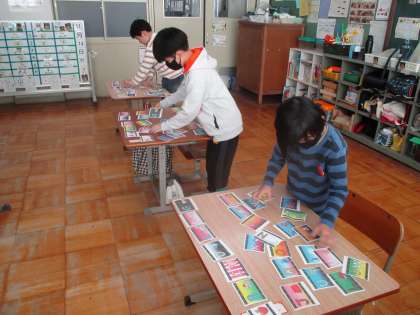 3組の英語学習ではアルファベットの学習をしています。ABCDE・・・・・。歌や絵カードをもとに楽しく覚えています。発音もよくなってきました。