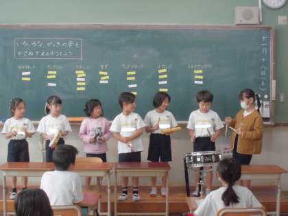 音楽科「いろいろな楽器の音のかさなりを楽しもう」