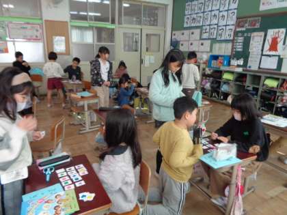 外国語の学習でいろいろな色や形を英語で言う学習をしてます。