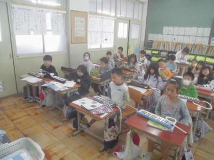 音楽発表会に向けて、歌と鍵盤ハーモニカの練習を頑張っています。集中して頑張っていました。