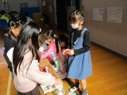 生活科の「あそんでためしてくふうして」の学習で作ってきたおもちゃをみんなで楽しみました。お店番も上手にして、1年生にも優しく話している姿がとても素敵でした。