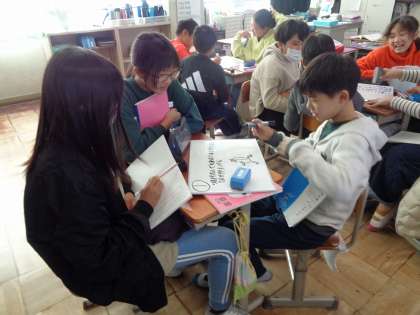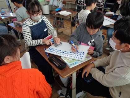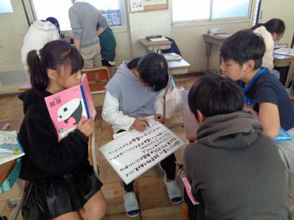 「鳥獣戯画を読む」の学習で、論の進め方や表現の工夫、絵の示し方について気付いたことをグループで話し合いました。