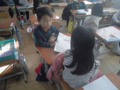 自動車図鑑を作って、ペアの子と良いところを見つけ合いました。初めて知った事や、詳しくかいていることを見つけて感想を述べていました。