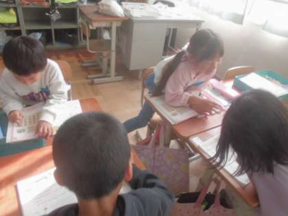 もののいちの学習をしました。ペアで問題をだしあっています。楽しそうにしていました。