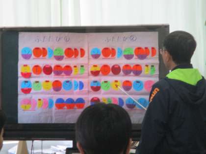 今日の音楽では、音楽発表会へ向けて、テレビを使っての演奏にチャレンジしました。