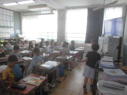友だちのことをもっと知るために、今一番楽しいことを質問をしました。ペアで質問したあと、分かりやすくメモをしていました。