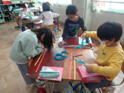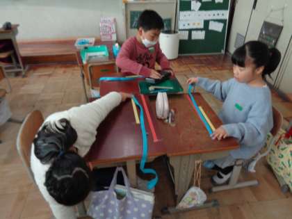テープを折るうちに、「分数で表せそう!」と気がついた子もいました。
