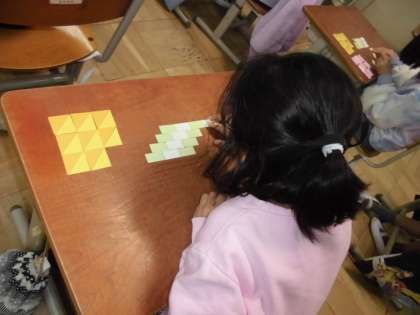 たくさんの色紙を並べて、タイルのようなもようを作ったりしました。