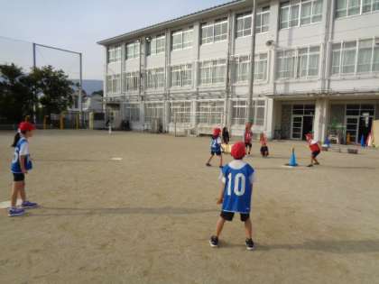 今日は「ルールになれる。」ことをめあてに試合をしました。
