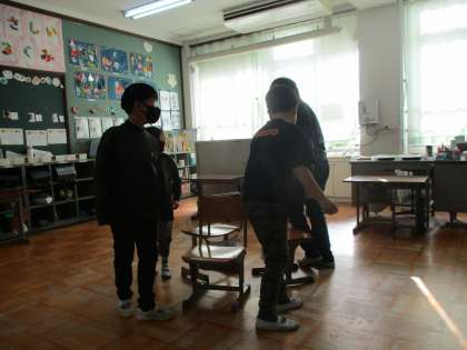 今日の音楽では、クリスマスソングで椅子取りゲームをしました。