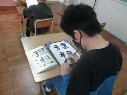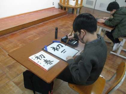 新しい年が始まりました。今日は書き初めをしました。なかなか難しい字でしたが、手本をよく見ながら丁寧に書いていました。