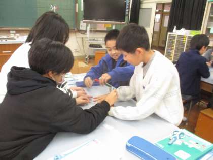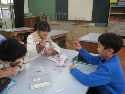 磁石をつかって、どこによくクリップがついているかを調べていました。鉄である釘が電気を通すことによって、磁石になることに驚いているようでした。