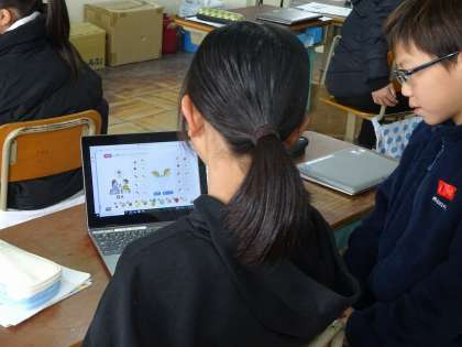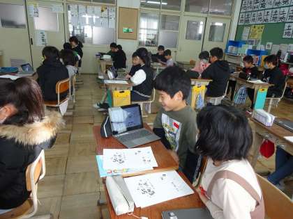 外国語活動では、パフェづくりをしました。英語でやりとりをしながら、相手の注文通りのフルーツを盛りつけていきました。どのペアもおいしそうなフルーツいっぱいのパフェが出来上がっていました!!