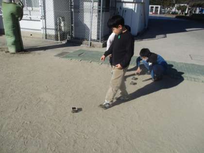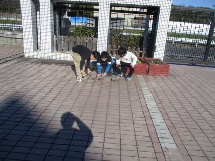 3組の理科では、太陽電池やソーラーシステムのことを学習しています。今日は、実際にミニソーラーカーを走らせてみました。太陽の光の力で走るので、「すご〜い」と驚いていました。友達と競争しあったり、運動場で走らしたりと楽しんでいました。