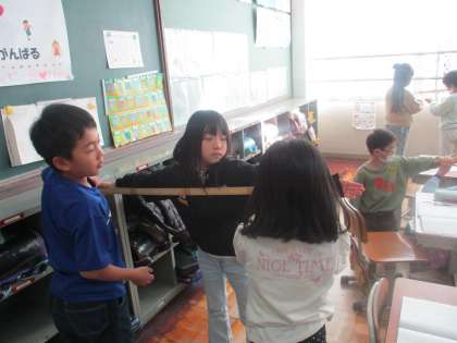 「もっと長い先生の定規が欲しい。」とのことで、100cmものさしでも測りました。