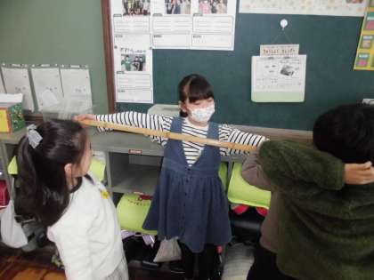 それぞれ自分の両手を広げた長さが分かって嬉しそうでした。