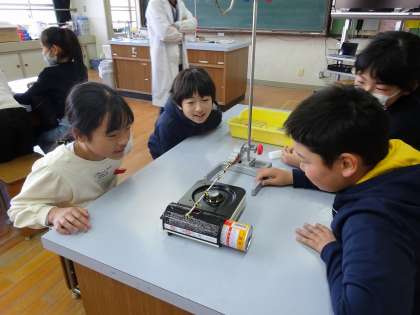 理科の学習では、もののあたたまり方について探究しています。今日は、金属のあたたまり方について実験しました。
