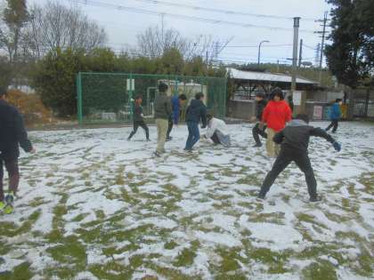 中間休みには雪合戦や雪だるまづくりを楽しみました。