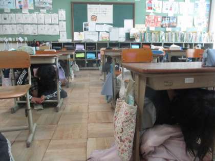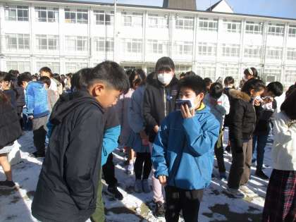 運動場に避難する時には、ハンカチを口にあて、無言で非難することができ、すばらしかったです。