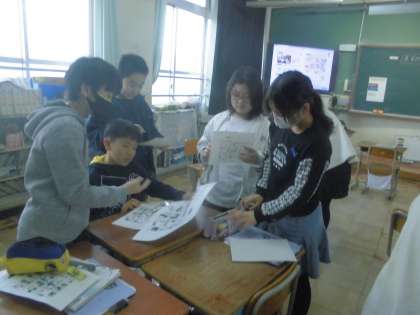 前回班のみんなで考えたオリジナルの町を使って、道案内をしました。