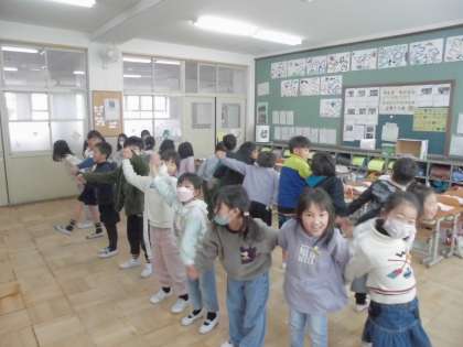 「ずいずいずっころばし」「あんたがたどこさ」「なべなべそこぬけ」をグループや全員で遊びました。