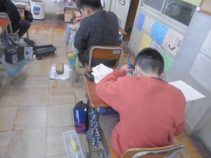 図工の学習では、糸のこを使ってホワイトボードを作っています。