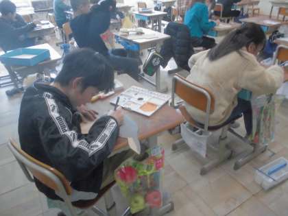 絵の具の色使いにも工夫が見られ、いくつも色を混ぜている様子が見られました。