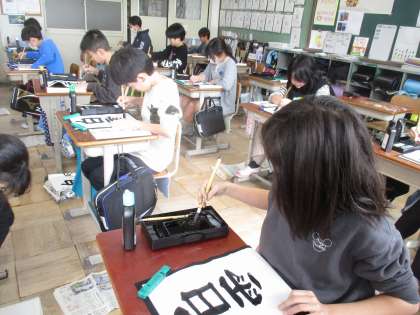 今日の書写は、白雲。「雲が大きくなりそうだから、バランスよく書きたい。」「あめかんむりを気を付けて書きたい。」など、気を付けて書くポイントを確認してから書きました。