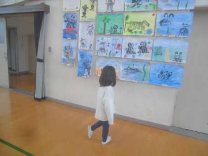 作品展を鑑賞しにいきました。それぞれの学年の素敵なところをたくさん見つけていました。
