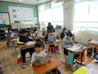 テーマを決め、作ったオリジナル詩集。今日は、友達の詩集を読み合いました。友達の作品のよいところをたくさん見つけていました!