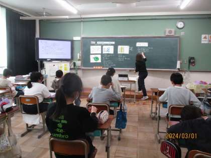 1日(金)食の学習がありました。今回は、食料自給率について考えました。普段食べているお豆腐の大豆は、ほとんどが外国産です。日本の食料自給率は7%。どうしたら食料自給率を上げることができるかを考えました。