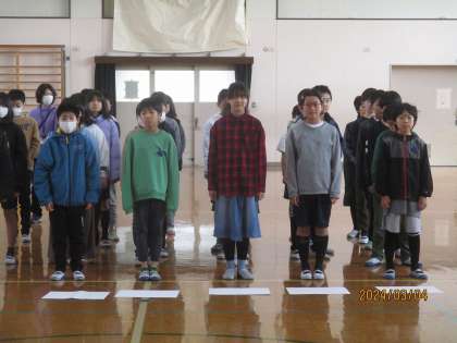 「大空がむかえる朝」を2部合唱します。体育館なので、声量や響き具合にも気を付けながら歌いました。伴奏も5年生児童が担当します。一人一人の思いが6年生に届くといいなと思います。
