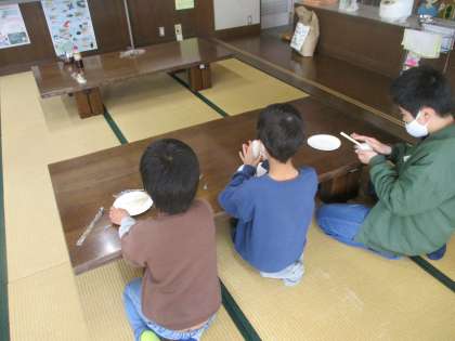自分たちが作ったごへいもちを早々に食べ終え、「先生の残るかな・・・」と・・・。