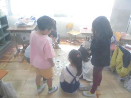 自分達で考えた会をしています。コップ遊びや神経衰弱ゲーム、射的などそれぞれ遊んでいました。準備から運営まで自分達でしました。
