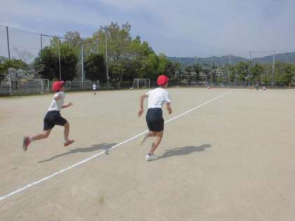 体育の学習で50m走をしました。久しぶりの運動だという子もいました。50mを全力で駆け抜けました。2回目は記録が似ている友だちと走りました。昨年度の記録と比べて速くなったという声も聞こえてきました。