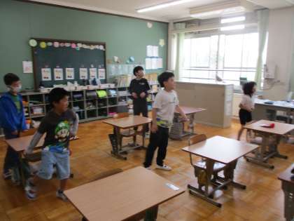 体を大きく動かすことで、脳への血流を増やすことが目的です。