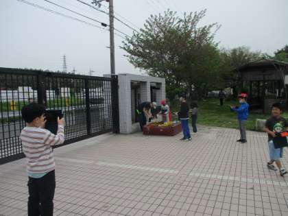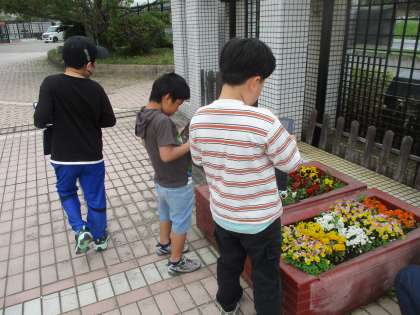 4月の図画工作では、春の植物の絵を描こうということで、今日は学校に咲いているビオラ・パンジーを撮影に行きました。