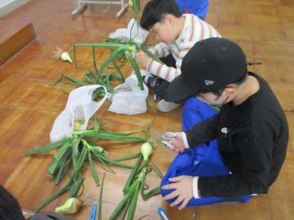 今日は昨年度から楽しみにしていた玉ねぎの収穫をしました。
