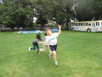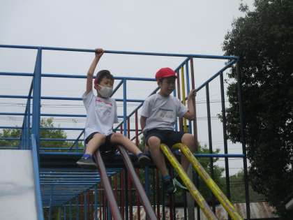 今日の自立の時間は、3くみでの50m走、手つなぎ鬼ごっこ、総合遊具遊びをしました。