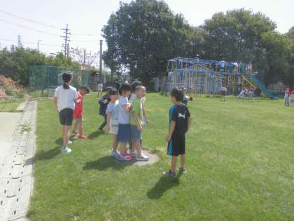 今日は芝生で鬼ごっこをしたり、ボール遊びをしたりしていました。