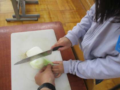 まずは包丁で玉ねぎを切ってお気に入りの断面を作ります。