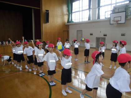 体育では、先生の真似っこをしてウォーキングをしたり、