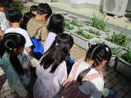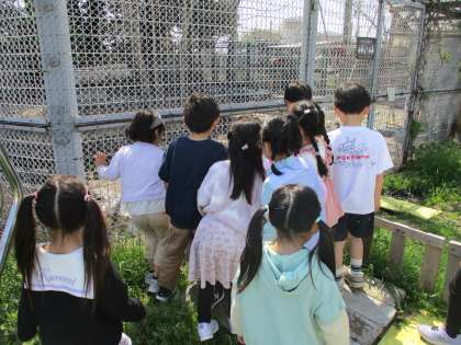小学校生活が始まり,約3週間が経ちました。子供たちは上里小学校の自慢である飼育小屋,ゆうゆうバス,いのちの森を見て,興奮した様子でした。2組のお友だちとたくさんお話しながら,楽しく上里小学校をめぐることができました。