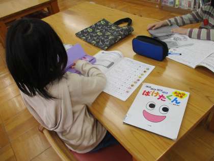 「あ!新しい本がある!」と新しい本との出合いに喜んでいました。