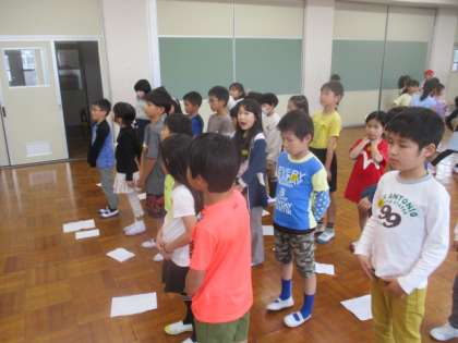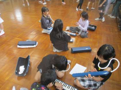1年生をむかえる会に向けてがんばって練習をしています。言葉を言う人・運動会の活動を再現する人・けんばんハーモニカを演奏する人、それぞれのグループに分かれて練習をしました。