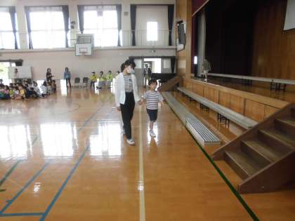 6年生に手をつないでもらい入場し、名前を呼ばれるとみんなしっかりと返事ができました。
