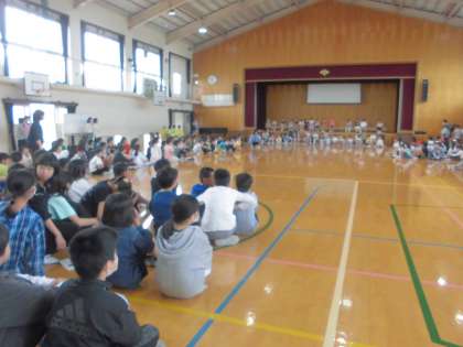 1年生を迎える会がありました。1年生の入場をエスコートした6年生。後ろ姿がとてもかっこよかったです。6年生の出し物もばっちり発表できました。各学年の出し物もとてもすばらしくすてきな会となりました。