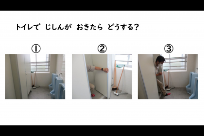 自転車はイラストで、地震は写真を使って安全の確認をしました。