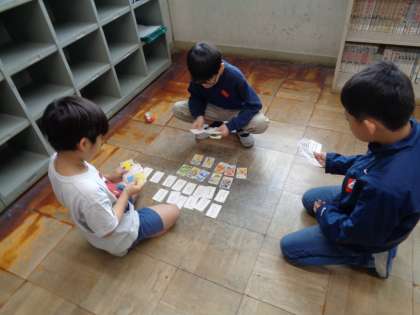 雨の日は、図書室へ行ったり、カードゲームをしたりしています!