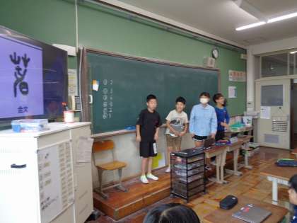 漢字の成り立ちクイズを作り、グループで出し合いました。